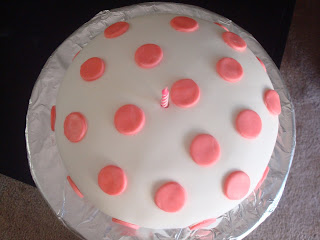 It was our friend Katie’s birthday yesterday and we were getting together for a little dinner. The instructions given to me were bring dessert. Well, you don’t have to tell me twice. So, I got right on it. I had been wanting to experiment with fondant icing for a little while because it always looks so pretty. So, I started getting crazy cake ideas in my head and then headed to the grocery store. I ended up with a wild concoction, but it was delicious. Double chocolate fudge cake from a box, with raspberry preserve filling and then buttercream icing (Wilton’s recipe) topped with fondant and of course polka dots made from a little red gel food coloring. Everyone keeps saying it looks like the cakes in Alice in Wonderland, which I didn’t see, but I’m flattered by. It’s really nothing, because fondant makes anything look good!