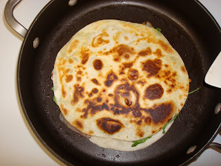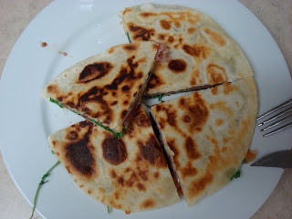 This brings me to the reason I post today: Mushroom, Proscuitto and Arugula Quesadillas. Oh Yea!