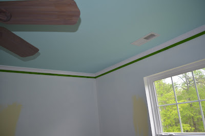 So cool-ceiling paint-great idea!! You do like putting Jacob to work-don't you.Ha! Its good for him!!! Can't wait to see the nursey completed decorated. You should go into the decorating business!