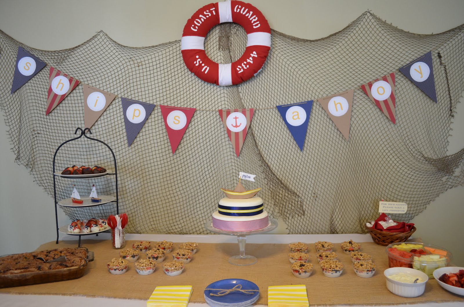 Everything was pretty much made from scratch and printed at home. We made the banner and all the food. The Coast Guard pillow was lots of fun, because not only is my hubby in the CG, but so is Jess’ husband for whom we threw the shower.