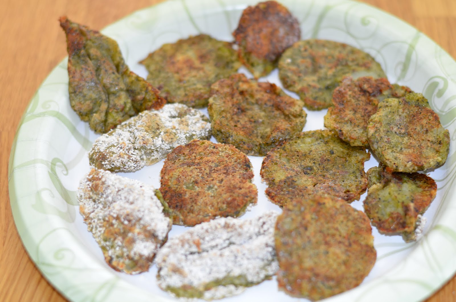 But then I realized I wasn’t selling these babies, who said they needed to be look like fries, so then I just started plopping them down as is on a sprayed cookie sheet. I put them in the oven at 400 and let them cook probably 15 minutes, flipping once. They came out of the oven, and I have to say tasted almost EXACTLY like the Peas of Mind brand. Which is cool for two reasons, 1.) I made my own recipe, woohoo! and 2.) the original brand was genuinely made from potatoes and broccoli.