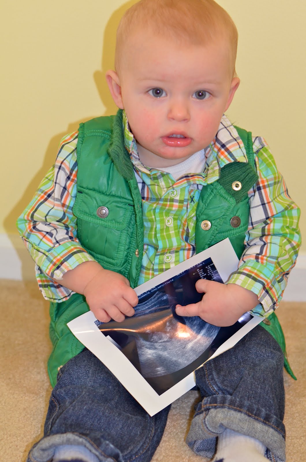 These photos of "big brother" are adorable. I love his little outfit, too! Can't wait to play with him this summer!!